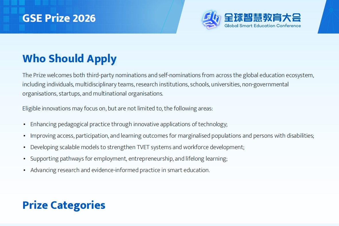 As the annual conference of GSENet, the 2025 Global Smart Education Conference (GSE 2025) will be held in Beijing from August 18-20. This conference will focus on “Human-Machine Collaboration: Reshaping the Educational Ecosystem for the Future”. It will feature a series of events, including plenary sessions, parallel forums, high-level policy dialogues, workshops, and roundtable discussions. It will showcase and exchange best practices, research and solutions in smart education, foster global collaboration and networking, and explore new pathways for implementing smart education for the future of the planet and the people.
